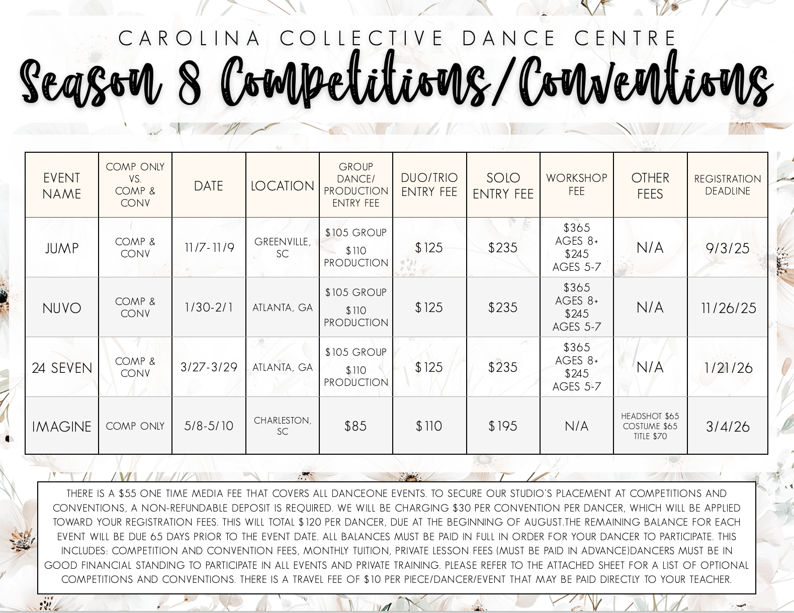 2025/2026 COMPETITION & CONVENTION FEES