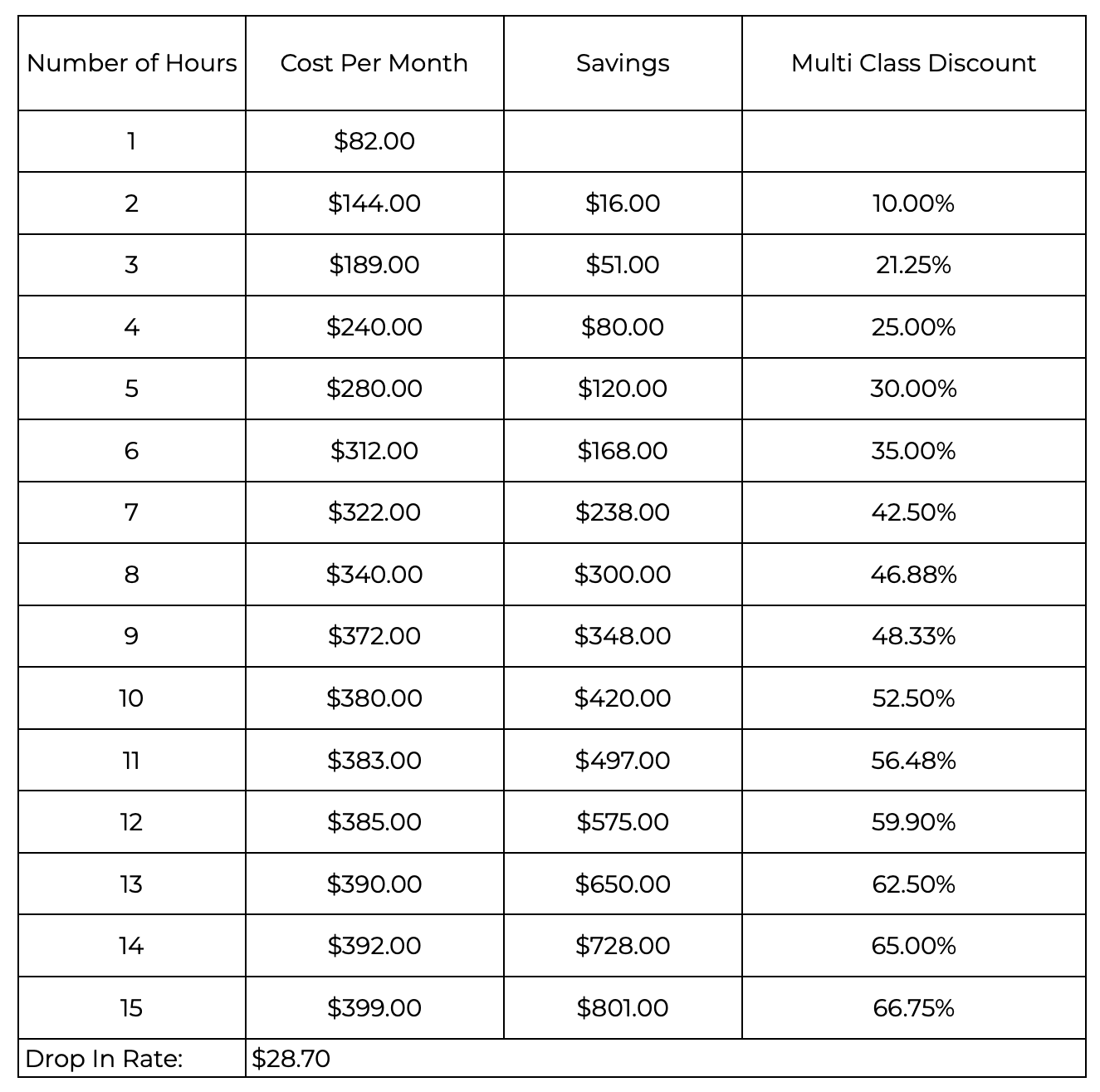 Our tuition rates are structured to be straightforward and family-friendly, with pricing that reflects the number of classes a dancer takes each week—the more classes enrolled, the greater the discount. We are also pleased to offer a 10% sibling discount to help support families with multiple dancers. If you have any questions about tuition, discounts, or the best class options for your dancer, please don’t hesitate to contact us—we’re always happy to help.